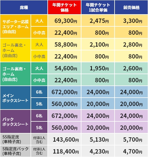 | SOCIO FANCLUB ・レギュラー(個人) ・レギュラー(ファミリー) ・レギュラー(キッズ) ・ライト |