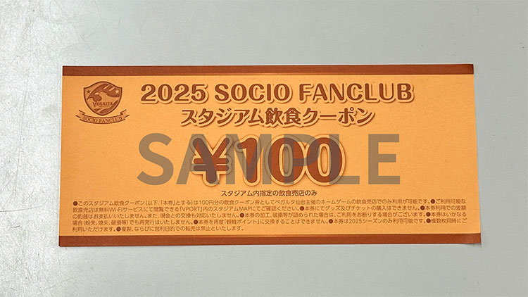 ホームゲーム開催時、SOCIO FANCLUBブース(北ゲート付近)にてICカード会員証もしくは「Club J.LEAGUE」のアプリ会員証をご提示のうえ、下記特典と交換いただけます。